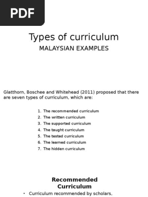 Related : Types Of Curriculum In Malaysia - (2008), describes the seven types of the curriculum in the following section..